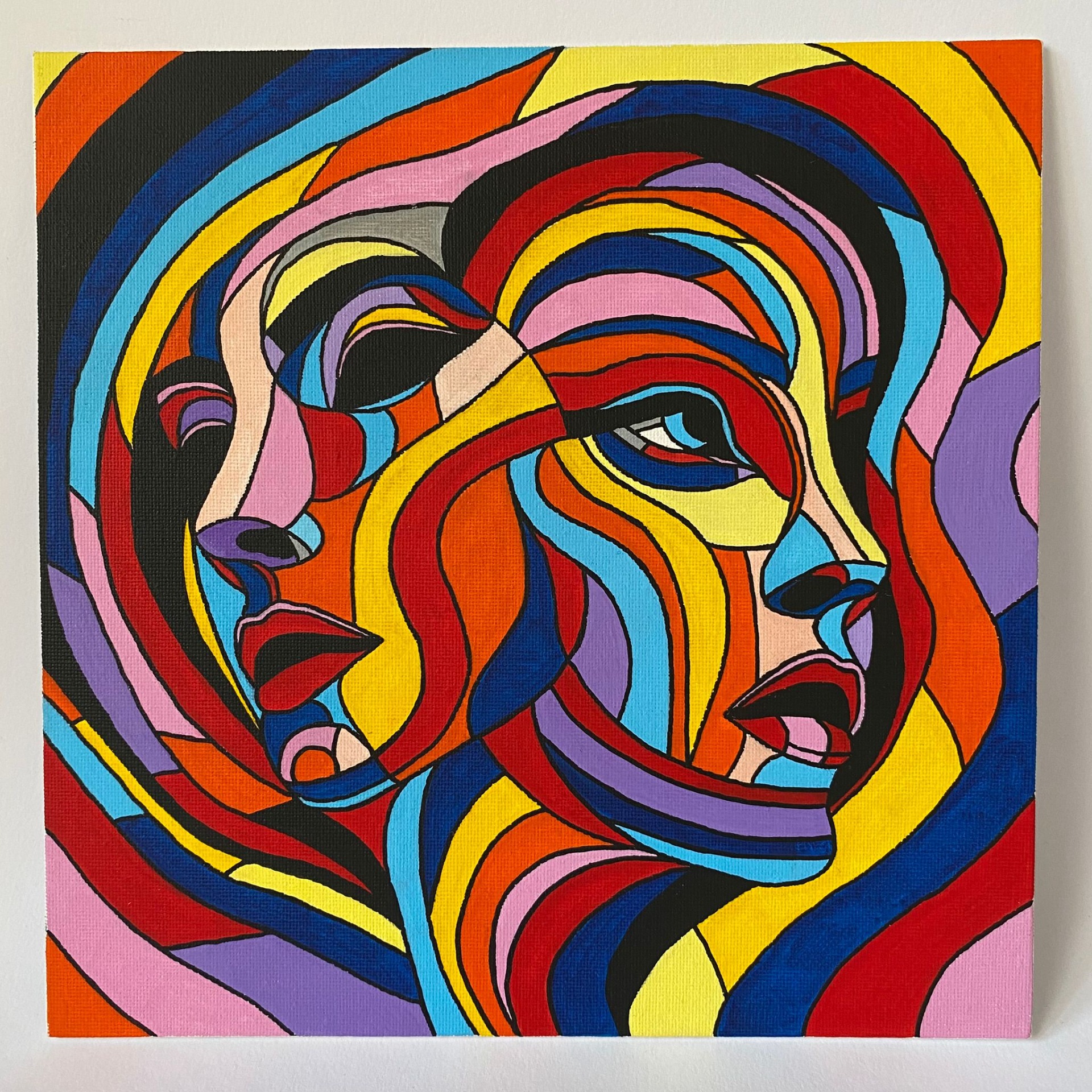 Obraz zachycuje nekonečný tok energie a životních cyklů, symbolizovaný spirálou růstu, proměny a vývoje. Prolínající se barevné proudy vyjadřují vyrovnávání protikladů a cestu, kterou každý z nás prochází vlastním tempem. Dvě tváře představují individuální hledání a zdánlivé vzdálení, jež však spirála znovu spojuje do většího celku – jako připomínku, že skrze změnu a intuici se vracíme k hlubšímu spojení se sebou i s ostatními.